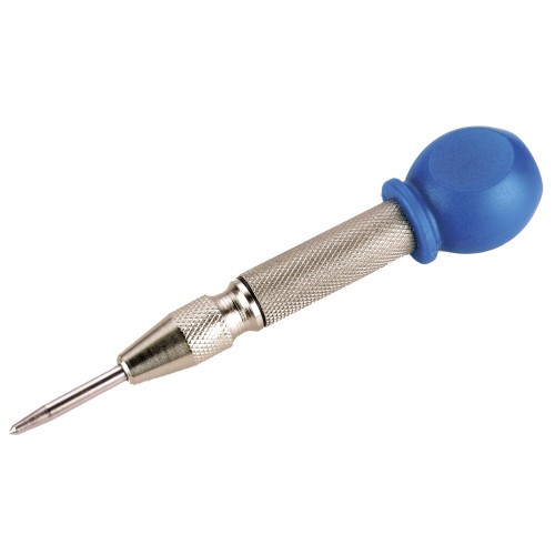 Granete o punzón fabricado en Acero (punta de acero HSS), con fuerza de impacto regulable. Al presionar la pieza contra la superficie a punzar, se almacena la energía en un muelle, liberándola finalmente como un impulso que lleva a cabo el granete produciendo la hoja. La cabeza tiene un agarre ergonómico. es de plástico resistente.