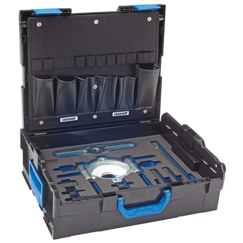 Dispositivo de extracción No. 1x 1.38/2, 70-215 mm;Dispositivo de separación No. 1.40/2, 22-115 mm;Juego de adaptadores de rosca No. 1.81/20, para aplicaciones de 1 y 2 agujeros, M14x1,2;Extensión No. 1.38/CV M14x1,5;+ GEDORE L-BOXX® 136 No. 1100 L