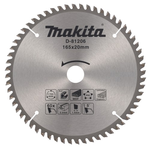 D-81206 Disco de sierra circular T.C.T., 165 x 20 mm, 60 dientes