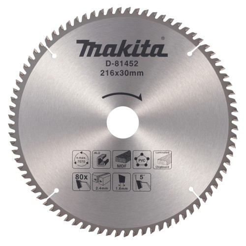 makita D-81452 Disco de sierra circular T.C.T., 216 x 1,6 x 30 mm, 80 dientes