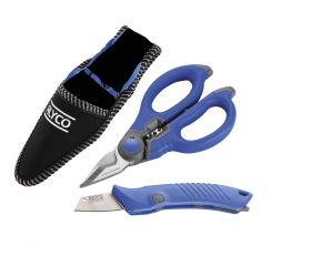 Kit de electricista con tijera y cuchillo pelacables en bolsa de nylon.